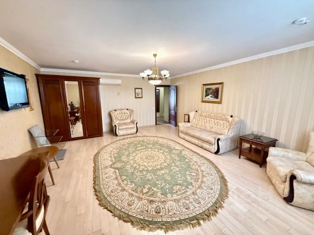 До моря 7 минут пешком по тенистой аллеи. Месторасположение в престижном районе Евпатории, Курортный район, возле отеля Украина, пересечение ул. Фрунзе, ул. Ленина, центральный вход в парк Фрунзе. Квартира после современного, свежего, капитального ремонта, мебель ВСЯ современная новая. Квартира полностью меблированная, состоит из двух изолированных комнат в каждой комнате кондиционер (сплит система), плазменная панель (кабельное цифровое вт. Смарт ТВ). В одной комнате двух спальная кровать с ортопедическими матрацам, во второй угловой двух спальный диван. Постельное бельё ,полотенца для внутреннего пользования, фен. Горячая, холодная вода постоянно. Сан. узел раздельный ,тёплый пол., просторная душевая в санузлах тёплые полы., стиральная машинка автомат, утюг, гладильная доска, Wi-Fi, микроволновка, двух камерный холодильник, кухня со всей необходимой посудой. Большой балкон с красивым видом на море и город. Бронированная дверь и закрытый тамбур.парковка во дворе. Установлен новый лифт. Во дворе детская оборудованная площадка и парковка для авто.
