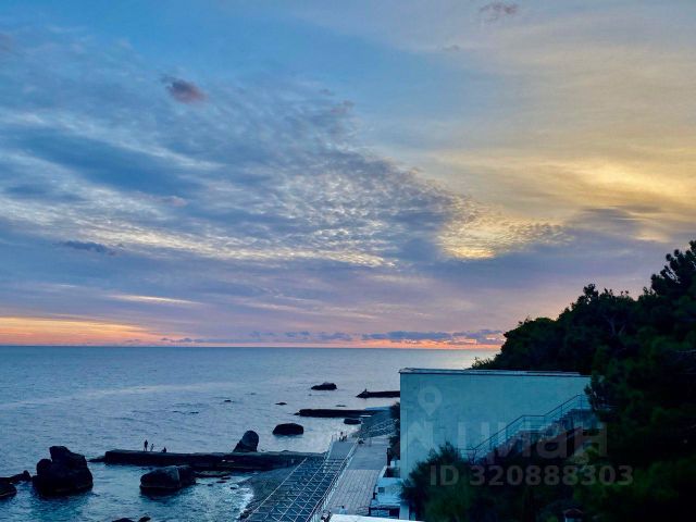 Квартира расположена на 4 этаже 9 этажного дома, есть балкон и большая лоджия. Окна выходят в тихий двор, с видом на море, горы и церковь.