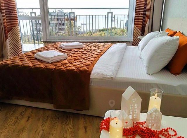 Декабрь-февраль: 1800 руб. Март: 1900-2000 руб. Апрель: 2100-2200 руб. Май: 2400-3000 руб. Июнь: 3300-4000 руб. Июль, август: 4500-5500 руб. Сентябрь: 3300-4000 руб. Октябрь: 2400-3000 руб. Ноябрь: 2100-2200 руб. Цена действительна при аренде от 7 суток. Квартира с балконом и видом на море, расположенная на 1 этаже отдельностоящего трехэтажного дома недалеко от Ливадийского парка. Состоит из гостиной и спальни и рассчитана на семью до 4 человек (диван и кровать). Идеальное место для отдыха - вокруг зеленые деревья, белки, птицы, целебный свежий воздух, внизу в балке журчит ручей, и до центра Ялты недалеко (2-3 км). В полутора километрах от дома расположен один из лучших городских пляжей Ялты "Дельфин", к которому вы можете подъехать на машине, либо можете спуститься на Ливадийский пляж через парк пешком. Общая площадь номера с балконом 55 кв.м. Оборудован всем необходимым: новая мебель, автономное отопление (теплые полы во всех комнатах), 2 кондиционера, газовая плита, посуда, интернет Wi-Fi, СВЧ, фен, утюг, стиральная машина и т.д. Парковка авто на площадке под домом бесплатно. Рядом с домом также находится ялтинский аквапарк "Атлантида" - 700-800 метров, Органный зал - 150 метров, Ливадийский парк и резиденция русских царей Ливадийский дворец - 500-600 метров или 5 минут пешком по ровной тенистой улице. Расстояние до моря полтора километра. Недалеко от дома также расположены остановки общественного транспорта, магазины, кафе, рестораны, рыночек, аптека и т.д. Возможно предоставление комплексных обедов (300 руб)