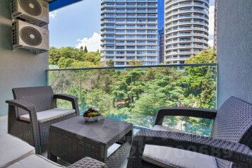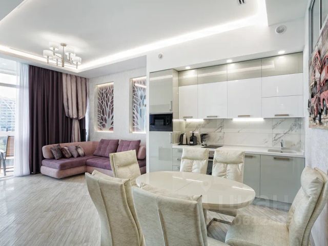 Современный апартамент в элитном ЖК "У Черного моря", первая линия в 100 метрах от моря (2 минуты пешком до оборудованных пляжей). Адрес: ул. Приморский парк, дом 10.