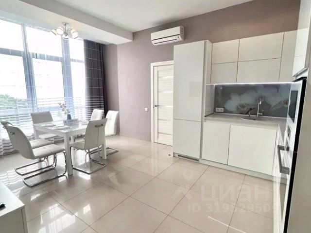 КОД 540631 Квартира с прекрасным видом на море и горы, общей площадью 130 квадратных метров, расположена на третьем этаже нового жилищного комплекса, в пригороде Ялты, пгт. Восход. Выполнен дизайнерский ремонт, панорамное остекление, есть вся необходимая бытовая техника, мебель и посуда, кондиционеры, индивидуальное отопление. Квартира состоит из зоны прихожей с большим гардеробным шкафом, кухни-гостиной, двух санузлов, большого пространства, разделенного на спальню и зону отдыха. На первом этаже дома расположен продуктовый магазин. Недалеко от дома, несколько мелкогалечных пляжей: Отрадное, Никита, гостиницы Ялта-Интурист. Условия размещения:Проживание от 5-ти сутокБез питомцевДепозитРазмещение Прихожая с вместительным шкафом, зеркалом, санузел с ванной и стиральной машинкой, санузел гостевой, просторная кухня-гостиная со всем необходимым, вход в спальню, столик для макияжа,TV, кондиционер, двухспальная кровать; зона отдыха с раскладным диваном, кондиционером, панорамным остеклением с видом на море и горы. Вместимость Основных мест 3 Доп.мест 1 Инфраструктура • Придомовая территория 10 соток • Наземная парковка • Продуктовый магазин • Детская площадка • Пляжи Расстояние До моря ~ 3,3 км, 10 минут езды на авто До набережной Ялты ~ 8,2 км, 15 минут езды на авто Номер объекта: #1/540631/17790