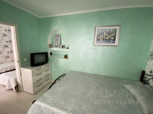 Квартира с хорошим ремонтом, окна выходят на разные стороны, вид на море из спальни, есть Wi-Fi. В зале установлен кондиционер, двухспальный диван, большой плоский телевизор, стол, есть выход на лоджию. На лоджии расположена сушилка для белья. Окна с видом во двор, на восток. В спальне стоит двуспальная кровать с ортопедическим матрасом, кондиционер, комод с зеркалом, комод, шкаф. Окно спальни выходит на запад, с видом на море. Окна евро, есть москитные сетки. На кухне установлен кухонный гарнитур, электропечь с духовкой, вытяжка, электрочайник, микроволновка, телевизор с плоским экраном, стол, мягкий уголок, табуреты. Окно кухни выходит на лоджию. В коридоре стоит холодильник и шкаф-купе с зеркалами. Туалет и ванна расположены раздельно. В ванной расположена стиральная машинка, установлена душевая кабинка, есть зеркало и раковина, полотенцесушитель. В туалете установлен бойлер.