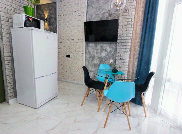 Эта квартира в Феодосии выполнена в современном стиле и с домашним уютом . В квартире имеется все необходимое для комфортного проживания . Всего в квартире 4-6 спальных места - два раздвижных двуспальных дивана, полуторный диван и кресло-кровать, имеется кондиционер и линия беспроводного интернета WI-Fi. В зоне кухни имеется все необходимое для приготовления еды , включая микроволновую печь. Ванная комната и санузел совмещенные, подача горячей воды от автоматической газовой колонки. В данной квартире имеется бак с запасом воды на 500 литров с насосом на случай отключения воды в городе в случае поломки сетей ну и для хорошего напора воды в квартире.