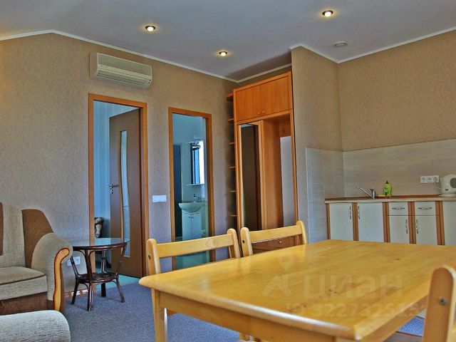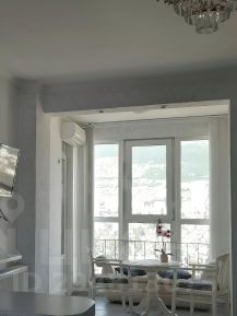 Номер состоит из гостиной с диваном и кухонным уголком, спальни с двуспальной кроватью и балкона, общая площадь без балконов 40 м2. Квартира оборудована всем необходимым: 2 кондиционера, двухкомфорочная индукционная плита, посуда, интернет Wi-Fi, СВЧ, фен, TV, новая мебель, утюг, стиральная машина, сушилка для белья, с/у, душ, автономное отопление (теплые полы во всех комнатах).