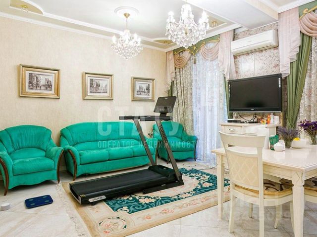 Гостиная: диван, два кресла, стол, телевизор, кабельное телевиденье.