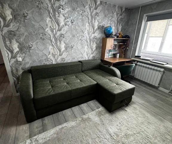 - кухня-гостинная - кухонный гарнитур (варочная панель, духовка, вытяжка, посудомоечная машина, микроволновая печь, 2-х камерный холодильник, электрочайник, тостер, столовые приборы, посуда для приготовления и сервировки). Диван-кровать 2-х спальный, телевизор LG 55", TV - тумба, обеденный стол со стульями.
