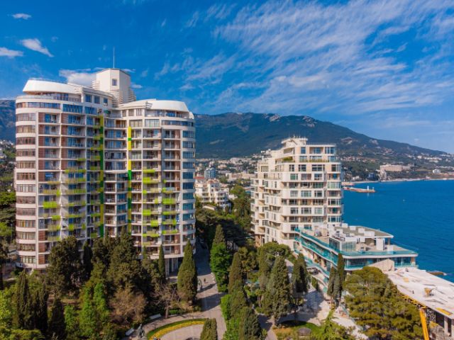 Выход из ЖК прямо к "центру" Партенита: ко входу в санаторий "Крым" и к остановке "Южная", откуда идут автобусы по всему Крыму (в Ялту, Алушту, Симферополь, Севастополь) и к санаторию "Айвазовское", есть магазины.