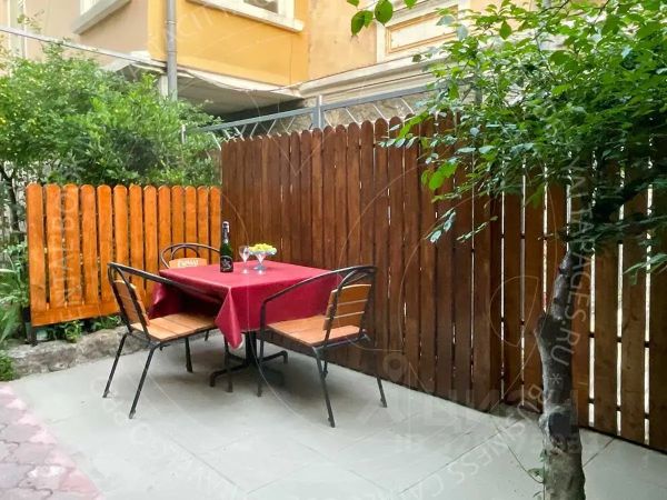 - На балконе размещены стулья с удобными подушечками, стол. На балконе Вы можете встречать рассветы и провожать закаты, с живописным видом на море и лесной массив.