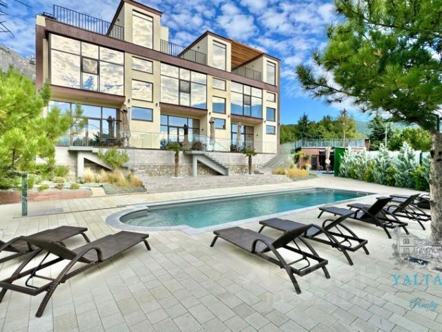 КОД 1072 Cepвис бpoнирования Ялта-Дoм прeдлагaет - Двухэтажный современный дом, -200 квадратных метров, включая каминную комнату, примыкающую к дому. Находится в тихом, экологически чистом районе Южного побережья. На двух этажах дома расположены: уютный холл-гостиная с мягкой мебелью, совмещённая с оборудованной кухней-столовой, четыре изолированные спальни, три санузла, финская сауна, бассейн, зона барбекю и подсобные помещения. Спальни второго этажа имеют выходы на видовую открытую террасу, и видовой балкон - с которых открывается вид на море и гору "Ай-Петри". Современная импортная мебель, отделка класса люкс, новая бытовая техника, три кондиционера и много разных полезных и приятных мелочей. На территории расположен небольшой домик в котором проживает собственник. Территорией для отдыха и бассейном собственник не пользуется. По близости расположены: продуктовый рынок, магазины, кафе, пляжи. До пляжа Русалочка 15 минут пешком, до платного пляжа 8 минут пешком. Условия размещения: Проживание от 5-х суток Заселение с 14:00, выезд до 11:00 В летний период услуги сауны не предоставляются Бассейн работает с июня по октябрь Обязательная платная уборка раз в 7 дней Проживание питомца оплачивается дополнительно, стоимость уточнять На территории за домом в дополнительном отдельном строении проживает собственница. РАЗМЕЩЕНИЕ На первом этаже располагается кухня-столовая, гостиная с двуспальным диваном, каминная комната, с/у. На втором этаже размещены спальни с выходом на видовую открытую террасу, с/у, видовой балкон - с которых открывается вид на море и гору "Ай-Петри". ВМЕСТИМОСТЬ 6 гостей 2 доп. места ИНФРАСТРУКТУРА закрытая придомовая территория 6 соток плавательный бассейн 7 х 4 зона барбекю с летней мебелью две летние террасы для отдыха каминная комната финская сауна (работает в зимний период) Wi-Fi интернет доступ паркинг для нескольких автомашин РАССТОЯНИЕ До пляжа 13 минут пешком, 6 минут езды, 1.05 км До Ялты 16 минут езды, 11.8 км *Стоимость зависит от периода проживания, количества суток и количества гостей. Уточнять предварительно. *В случае если на заселение приедет большее количество гостей чем указано в описании, собственник имеет право отказать в размещении без возврата предоплаты. Номер объекта: #1/539197/17790