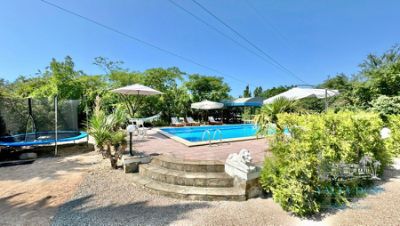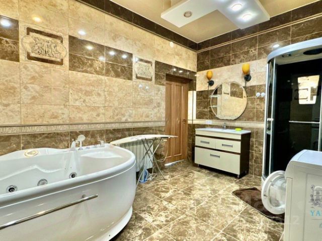 КОД 2041 Сервис бронирования Ялта-Дом предлагает -Вилла - отличный вариант для тех, кто ценит простор и свободу, которые дают загородные дома, но, вместе с тем, не может без насыщенной городской жизни. Расположенное в сердце Ялты новое здание готово обеспечить своим гостям прием премиум-класса. Роскошный особняк, с собственной закрытой территорией, сдан в эксплуатацию в 2014 году. К услугам отдыхающих много просторных помещений, оснащенных согласно последним тенденциям современным оборудованием и добротной мебелью. Ландшафтный дизайн придомовой территории радует свежестью решений, продуманным озеленением и насыщенной инфраструктурой: предусмотрены и зоны отдыха, и бассейн, и сауна, и паркинг для автомобилей. Знаменитая ялтинская набережная и пляжи находятся в десяти минутах неторопливой ходьбы. Условия размещения: Депозит РАЗМЕЩЕНИЕ Вилла представляет собой четыре этажа, три из них занимают жилые помещения, а на четвертом разместилась большая терраса-солярий открытого типа, с которой можно любоваться открывающимися видами, принимая солнечные ванны. Первый этаж здания зонированный на несколько отделений холл гостиного типа. В нем гармонично соседствуют кухня и столовая, каминная и релаксационная зоны. На этаже есть санузел и бытовые помещения. На втором этаже расположены три отдельные спальные комнаты, из которых есть выходы на балконы, а также два санузла. Третий этаж занят тремя спальнями, у каждой из которых есть видовой балкончик. На уровне два санузла. Также на этаже находится дополнительные апартаменты: две гостиные и две резервные спальни - эти комнаты используются в случае, если основных помещений для приема большой компании окажется не достаточно. В доме предусмотрено наличие полноценного комплекта современных бытовых девайсов, включая LED TV, стиральную машину-автомат, систему кондиционирования и беспроводной интернет. ВМЕСТИМОСТЬ До 16 гостей ИНФРАСТРУКТУРА 8 соток территории с прекрасным дизайнерским ландшафтом; Бассейн без подогрева; Баня электрическая (возможно доплата, зависит от сезона); Зоны отдыха; Зона барбекю с необходимым инвентарем; Два гаража; Беспроводной интернет (Wi-Fi); Услуги повара за дополнительную плату. РАССТОЯНИЕ До набережной Ялты 750 метров, 9 минут пешком До пляжа 1,6 км, 13 минут пешком *Стоимость зависит от периода проживания, количества суток и количества гостей. Уточнять предварительно. *В случае если на заселение приедет большее количество гостей чем указано в описании, собственник имеет право отказать в размещении без возврата предоплаты. Номер объекта: #1/538476/17790 Коттедж в аренду, кол во спален - 3..
