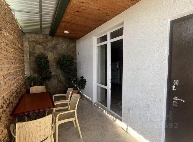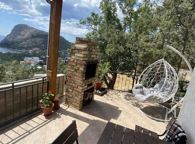 Терраса застеклённая, там можно отдыхать в любую погоду .Есть выход на площадку с видом на море. Там тоже стоят столики , мангал, вид на море.