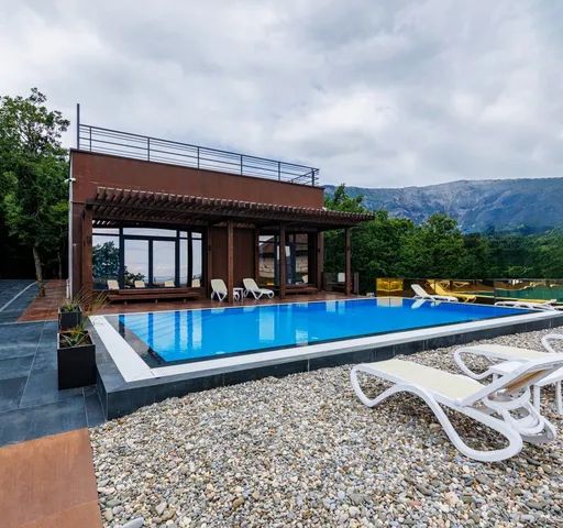 КОД 540548 Новая двухэтажная вилла с дизайнерским ремонтом, панорамной эксплуатируемой кровлей, открытым бассейном с подогревом и хамамом. Вилла для ценителей прекрасного, сочетающая в себе интонационные технологии и современное искусство, общей площадью 450м2, на участке 10 соток, расположена в реликтовой дубовой роще на горе Могаби; в тихом месте идеально подходящем для приватного отдыха. Вилла для комфортного проживания круглый год: просторная кухня-гостиная с зоной релакса с большим TV и видом на бассейн, удобной авторской мебелью, небольшой барной стойкой и современными девайсами для приготовления пищи. В доме - пять спален, оформленных в разных цветовых решениях; четыре спальни имеют открытые балконы с летней мебелью, видом на горы и лес. В каждой спальне, зона для хранения вещей, TV, кондиционеры; мастер-спальня со своим санузлом, с авторской росписью. Аксессуары и мебель в интерьере виллы сделаны на заказ мастерами из России, Франции, Испании и Италии. К дому удобный асфальтированный подъезд. За виллой начинается лес, тропинка здоровья, рядом два озера. За дополнительную плату, на вилле предоставляются услуги профессионального массажиста и консьерж-сервис. Условия размещения • Проживание от 5 суток в сезон и праздники • Проживание от 3х суток в межсезонье • Питомцы мини-пород (за доплату) • Депозит Размещение Первый этаж: зона спа: хамам, купель, душевая, комната отдыха с мини-кухней, санузел. Выход к зоне барбекю. Гостевая спальня с двуспальной кроватью, санузел с душевой, прачечная. Второй этаж: холл, гостиная с выходом к бассейну, кухня столовая совмещены, кухня полностью укомплектована бытовой техникой (посудомоечная машина, духовой шкаф, микроволновая печь, кофе машина, чайник). Спальня с двуспальной кроватью и выходом к бассейну, санузел с ванной и душевой кабиной на стенах выполнена авторская роспись. Спальня с двуспальной кроватью и выходом на балкон с летней мебелью и видом на лес. Санузел с душевой кабиной. Спальня с двуспальной кроватью и выходом на балкон с летней мебелью и видом на лес. Спальня с двуспальной кроватью и выходом на балкон с летней мебелью и видом на лес. Эксплуатируемая кровля: лаунж-зона с потрясающим панорамным видом на море, город и горы. Вместимость До 10 гостей Инфраструктура • Придомовая территория 10 соток • Бассейн с подогревом (за доплату), 12х8 • Хамам • Купель • Массажный стол • Зона барбекю • Тропинка здоровья • Эксплуатируемая крыша с лаунж-зоной Услуги За дополнительную стоимость: • Консьерж-сервис • Массаж • Уборка Расстояние до моря 5 км, 10 минут езды езды на авто до центра Ялты 6,2 км, 15 минут езды на авто Номер объекта: #1/540548/17790