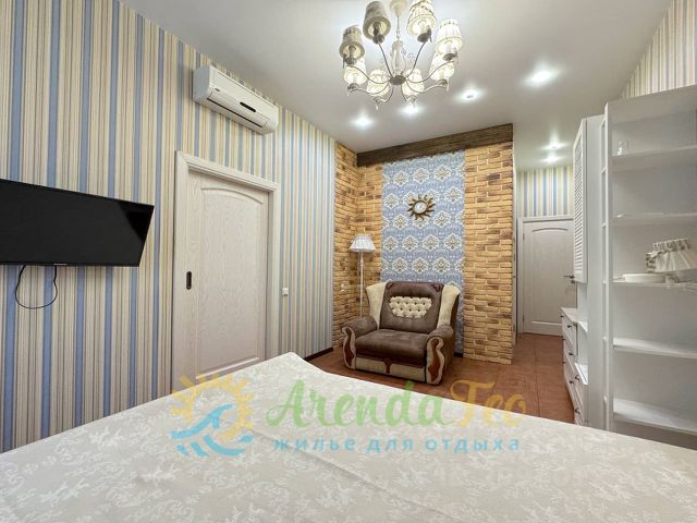Вашему вниманию хотим предложить просторный трехэтажный дом с бассейном со своим личным двором по ул. Волынкина. --- МЕЖСЕЗОНЬЕ ДО 8-ми гостей: 14 000 - 16 000 руб./сутки - от 3х суток Цена зависит от количества проживающих и срока аренды. --- СТОИМОСТЬ АРЕНДЫ ДО 8-ми ГОСТЕЙ! МАЙ: 14 000 - 16 000 руб./сутки - от 3х суток ИЮНЬ: 15 000 - 17 000 руб./сутки - от 7 суток ИЮЛЬ: 20 000 руб./сутки - от 7 суток АВГУСТ: 20 000 руб./сутки - от 7 суток СЕНТЯБРЬ: 17 000 - 15 000 руб./сутки - от 7 суток --- На период отпуска в вашем распоряжении будет парковка, огромная дворовая территория, все 3 этажа дома и, конечно же, бассейн. Объект подходит для большой компании до 8 человек. Планировка и особенности объекта: Территория очень красивая: просторный газон, огромное количество зелени, беседка, зона барбекю, 2-3 парковочных места все к вашим услугам. На первом этаже находятся: Крытый бассейн с роскошными панорамными окнами, душевыми, сауна, зоной для отдыха; Просторный холл; Великолепная кухня с элегантной мебелью, посудой, бытовой техникой. Здесь же находится большой деревянный стол, за которым с комфортом разместятся все жильцы дома. Гостиная с камином, мягким уголком. Второй этаж: 2 спальные комнаты, каждая из которых оснащена личным санузлом (туалет + ванная). Для сна установлены двуспальные кровати. Также есть телевизоры, шкафы. В одной из комнат рабочий стол. Третий этаж: На самом высоком этаже спланированы две комнаты, отдых в которых превратит ваш сон в истинное удовольствие! Одна из комнат отдельная, вторая проходная. Для отдыха установлена двуспальная кровать. Санузел на этаже один. Есть спортивные тренажеры. Море Отдаленность дома от Черного моря составляет 2, 5 км, поэтому снять жилье в Феодосии на улице Волынкина предлагаем людям, путешествующим на авто. --- УСЛОВИЯ ЗАСЕЛЕНИЯ: Условия бронирования: предоплата 10-20% от общей стоимости. Время заселения: с 14:00 (круглосуточно) заезд раньше 14:00 возможен за доплату. Время выселения: до 12:00 - выезд позже 12:00 возможен за доплату. Бесплатная парковка в закрытом дворе. Проводить вечеринки запрещено.
