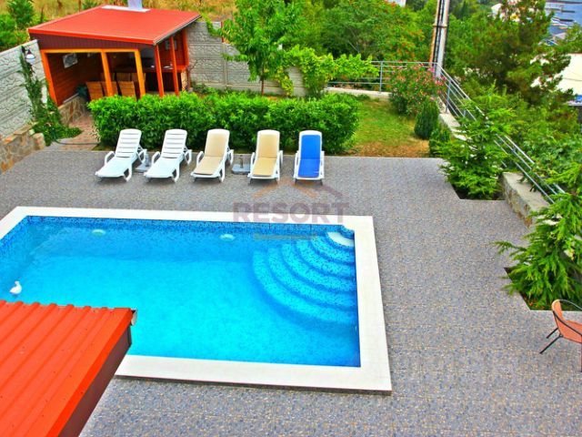 Частная четырехэтажная вилла с открытым бассейном, общей площадью 300м2, на закрытой территории 10 соток. Вокруг дома сад со множеством экзотических растений, места отдыха: садовые качели, скамейки, беседка, смотровая площадка, оборудованная мангальная зона с летней кухней (с плитой и посудомоечной машинкой), детская площадка; за периметром территории, парковка открытого типа, видео-наблюдение.