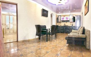 Кухня небольшая, уютная, есть все необходимое для приготовления пищи. Микроволновка, плита,мойка, чайник,фильтр тонкой очистки воды, столовая, кухонная посуда, чайные и столовый сервизы,столовые приборы, набор для шашлыка, бокалы.