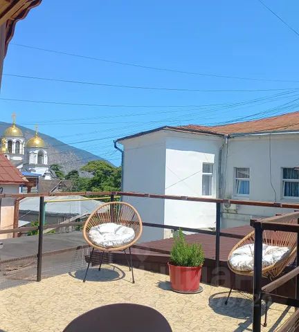 Автономный двухуровневый апартамент: холл, мини-кухня (чайник, холодильник, микроволновая печь), совмещенный с душевой санузел, двуспальная кровать, раскладное кресло-кровать, выход на террасу с летней мебелью. Апартамент используется как дополнительная спальня при большом количестве гостей.