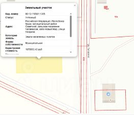 Земельный участок кадастровый номер: 90:13:110501:1355, площадь: 1500 кв. м который расположен по адресу: Республика Крым, Советский муниципальный район, Чапаевское сельское поселение, село Новый Мир, улица Гагарина, категории з...