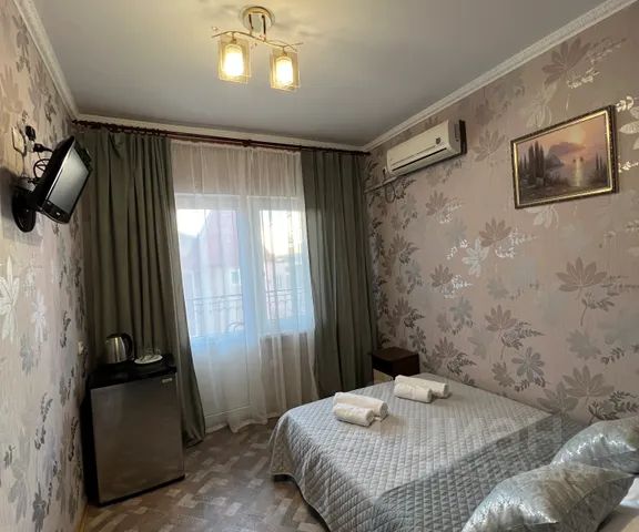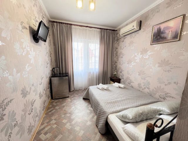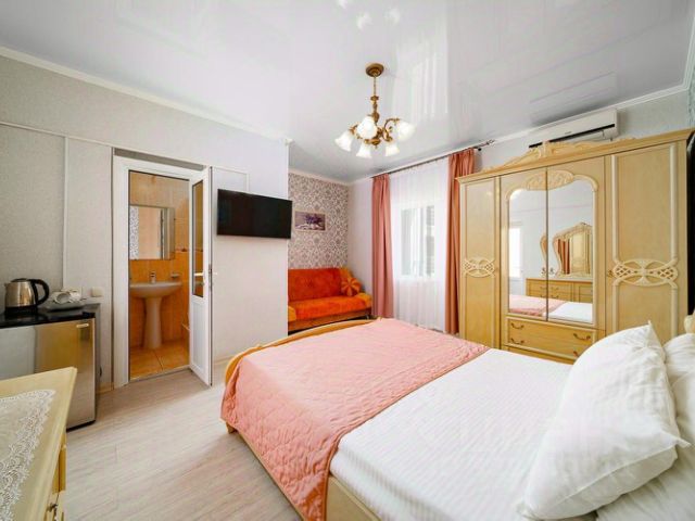 Максимальное количество мест — 3, в номере кондиционер, холодильник, телевизор, микроволновка, двуспальная кровать, диван, столик обеденный, стулья, шкаф для одежды с зеркалом, москитные сетки, утюг, гладильная доска. Парковка.