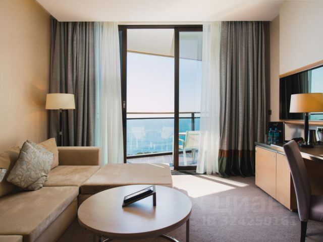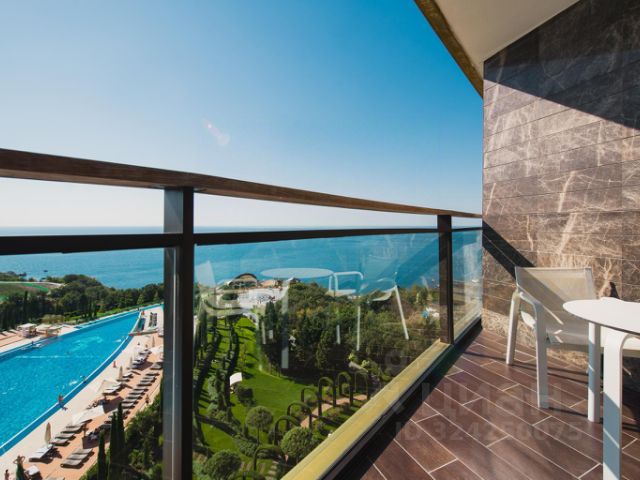 Большой трехкомнатный номер на вилле 19 века Лимене на территории парк отеля Голубой залив. Здесь комфортно разместятся до 4х гостей. Две спальни. В первой большая ортопедическая кровать KingSize и туалетный столик с пуфами, во второй две односпальные кровати. Гостиная комната с комфортным диваном, зоной отдыха, гардеробом. Санузел просторный с ванной и душем. Номера этой категории расположены на втором этаже здания на южной стороне. Из окон открывается вид на парк отеля, бассейн.