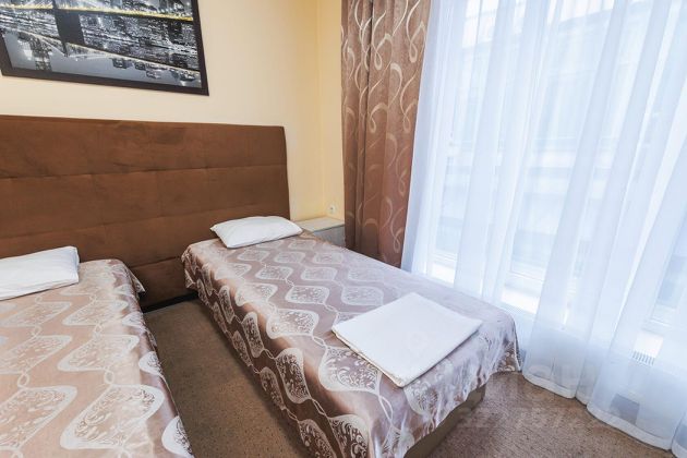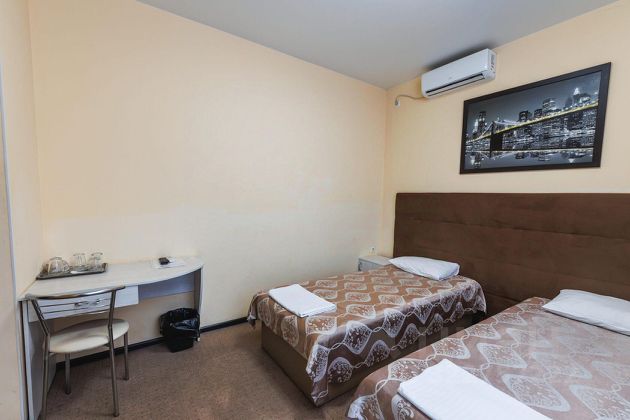 Гостиница в одном из деловых центров города Симферополя, в непосредственной близости к стадиону "Таврия" и недалеко от центра города, с удобной транспортной развязкой. Поблизости есть множество магазинов, ресторанов, достопримечательностей и интересных мест. В отеле 87 комфортабельных номеров различных категорий. Комфортные номера с современным минималистическим дизайном выполнены в теплых тонах. Полы покрыты ковролином и коврами, стены выкрашены в нейтральные пастельные тона и украшены картинами. Большая часть номеров имеет собственный балкон, отделенный от основного помещения стеклянной дверью. Каждый номер имеет отдельную ванную комнату с подогреваемым полом, ванной с навесным душем, зеркалом, полочками и держателем для полотенец с подогревом. К услугам гостей отеля в Симферополе: уютное кафе с летней площадкой, кафе-бар, где можно вкусно покушать и отлично провести время, финская сауна с бассейном, охраняемая стоянка для автомобилей с возможностью парковки крупногабаритных транспортных средств. Для проведения бизнес-встреч или других событий имеется конференц-зал, оборудованный всем необходимым. В номере: Телевизор; Холодильник; Две односпальные кровати; Санузел.