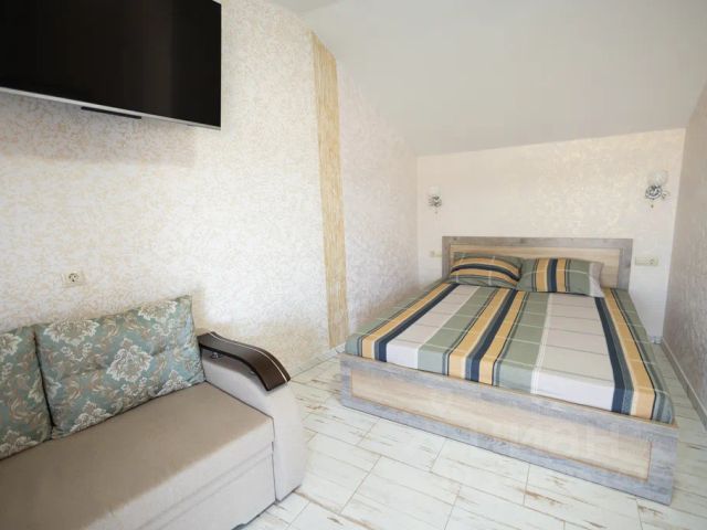 Один ребёнок до 2 лет — можно без отдельного спального места. Уютный однокомнатный номер прекрасно подойдет для путешественников, которые ищут экономичный вариант отдыха в 100 метрах от моря. Однокомнатный номер рассчитан на 3 основных места. Площадь номера: 18 кв. М. Основные места двуспальная и односпальная кровати или 3 односпальных кровати. Предпочтительную конфигурацию спальных мест уточняйте, пожалуйста, заранее (в комментариях к вашему бронированию). Возможна установка детской кроватки по предварительному запросу. Детали: установлена базовая необходимая мебель, холодильник, тв, кондиционер. Предоставляем гостям набор полотенец, фен, гигиенические средства в одноразовых упаковках, тапочки при заезде. Отличие: номера данной категории расположены на 1-3 этажах корпуса 1, имеют вид на прилегающую территорию. Номера без индивидуальных балконов, общая терраса. Мы гарантируем размещение в выбранной вами категории номера.