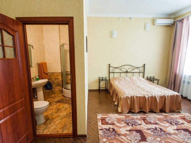 Двухкомнатный номер в частном доме на даче на втором этаже. Имеется кондиционер и телевизор. До ближайшего пляжа 800м. До г. Щелкино 1 км. Отдельно имеется общая кухня с газовой и электроплитой, электрочайник, микроволновка. Туалет и душ отдельно Автоместо для легкового автомобиля(не большое)