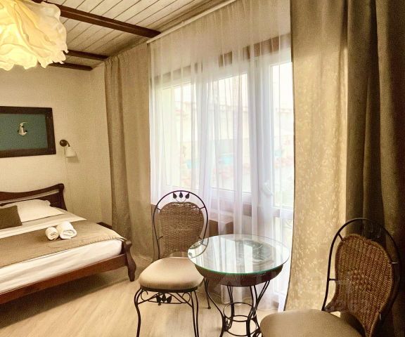 Комфортабельный отель "Villa Koronello" находится в городе-курорте Феодосия в исторической части. По информации из архивов Екатерина II приезжала в Дом Коронелли к священному источнику Места Силы. Мы бережно храним это место и почитаем его древнюю историю. Наша Вилла граничит с древнейшей Армянской Церковью Михаила и Гавриила 13 века, мы чтим родовые и духовные традиции, поэтому просим с понимаем отнестись к тому, что на территории отеля запрещено курить и находиться в нетрезвом состоянии. В Дом Коронелло приезжают люди как на место силы - с целью восполнения жизненной энергии, очищения, решения насущных жизненных вопросов. - Номера выполнены в стиле минимализм с использованием натуральный природных материалов. - У нас не курят, поэтому во всех номерах приятная свежесть. - В отеле собственная система подготовки воды, что позволяет поставлять гостям для умывания и питья чистую воду. - Отель является круглогодичным, поэтому предусмотрена система отопления. - Мы используем постельное белье премиального качество из 100% хлопка гладкого сатина, наши подушки и одеяла безопасны для людей с аллергией. - Территория представлена внутренним двориком с множеством зелёных насаждения, кухней, сквером для отдыха, а также лаундж зонами и террасой со смотровой площадкой. - Вся необходимая инфраструктура находится в пешей доступности. Очень удобный путь к морю. Если Вы приезжаете с ребенком в колясочке, то Вас ждет ровная дорога по тенистой платановой аллее к морю, отсутствие ступеней делает ее комфортной. - Центральный рынок с фруктами и овощами в 10 минутах пешком, в двухстах метрах находится. Три магазина с продуктами и небольшие фруктовые лавки, а также кофейни и рестораны. Номер класса стандарт улучшенный со своим балконом, двухспальной кроватью и двумя широкими раскладными креслами либо одним креслом кроватью. В номере свой сан узел, смарт тв с выходом в интернет, сейф, фен. В сан узле полотенца, туалетная бумага, мыло, шампунь, тапочки.