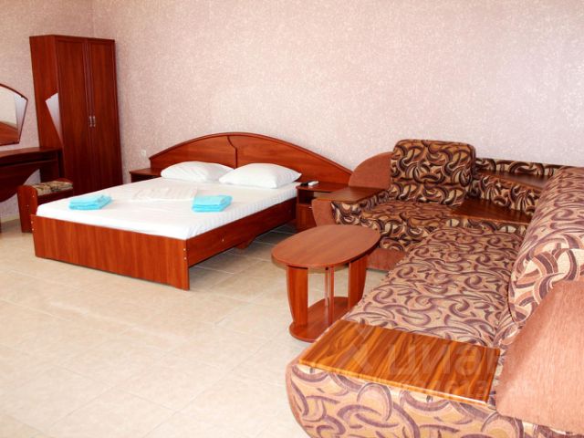 Дом расположен в 30 метрах от моря. Стоимость зависит от количества проживающих человек и количества комнат. Минимальный срок проживания 4 суток. Рядом с поселком расположено озеро Чокрак и Генеральские пляжи Предлагается проживание в двухкомнатных комфортабельных номерах. Площадь 50 м2, комнаты раздельные. Спальных мест от 4х до 6 человек. В помещении имеется: двуспальная кровать, раскладные диван и кресло, шкаф для одежды, тумбочки, журнальный столик, кухня. Кухня укомплектована: микроволновкой, плитой газовой, эл.чайником, холодильником, фильтром для воды, всей необходимой посудой и кухонными принадлежностями.. В комнатах есть кондиционер, вентилятор, телевизор, утюг, фен. Санузел 5м2, все удобства. Вода во всех кранах и душе пресная, питьевая. Выход на веранду 16 м2. На участке расположены два дома. Дома находятся на разных территориях, поэтому сохраняется приватность и отсутствие большого количества людей, что позволяет отдыхать в тишине и покое. Питание мы не предоставляем, в номере есть все условия для комфортного приготовления пищи. При желании, можно питаться в кафе или столовой, которые расположены недалеко от дома. В посёлке есть 4 магазина, идти от 2 до 7 мин.