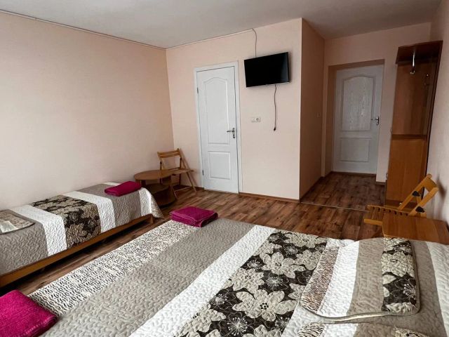 База отдыха расположена на берегу озера, в 50ти км. от Санкт-Петербурга, в 3-х км. от ж/д. ст. Орехово. Территория базы отдыха расположена в 20-30 метрах от береговой линии живописного лесного озера "Большое Борково", это экологически чистый район Карельского перешейка. Сосновый бор, множество озер, свежий чистый воздух. Для любителей зимних видов спорта непосредственная близость базы отдыха Журавушка к горнолыжному курорту (10 км) позволяет получить доступный полноценный отдых в зимний период. Журавушка это 3 коттеджа класса LUX, вместимостью до 12 человек, с 5 спальнями, 4 санузлами, сауной, каминной, гостиной и кухней. Есть коттеджи, рассчитанные на 5-7 человек с 2-3 спальнями, санузлом, сауной, гостиной и кухней. Также есть уютные коттеджи с кухней на двоих с панорамными окнами и террасой. Еще в Журавушке есть 2-х и 3-х местные номера класса комфорт, с обогревателями, телевизорами и удобствами на этаже. И номера класса эконом, с обогревателями и телевизорами, с удобствами в соседнем доме. База отдыха Журавушка, предлагает своим гостям зимние и летние виды досуга. Круглый год сауна, бильярд и пинг-понг. Летом спортинвентарь, бадминтон и велосипеды. Зимой лыжи, ватрушки и коньки. Также на базе есть кафе и столовая, которая готова предоставить 3х разовое питание или любое другое питание на заказ. На базе есть баня вместимостью до 15 человек. На территории базы есть площадки для корпоративного отдыха - беседка на 40 человек, корпоративный комплекс на 60 человек и танцевальный зал на 30 человек. Двухэтажный дом с номерами В номере 1 комната, чайник, телевизор, обогреватель На этаже микроволновка, холодильник, с/у на 2 номера Газовых и электрических плит - нет.