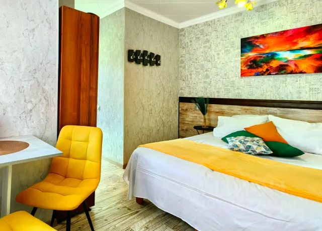 Гостевой дом Валерия, состоит из двух - трехэтажного корпуса. Имеются 2х-3х местные номера, от эконом до люкс (16-40м. кв. ). В каждом номере: телевизор, холодильник, кондиционер , санузел, новая мебель. Холодная и горячая вода постоянно, имеется своя скважина, двор просыпан и выложен экологически чистым морским камнем. Есть номера с кондиционерами, собственной кухней, спутниковым телевидением, а так же номера с видом на горы. Территория круглосуточно охраняется, WI-FI, ведется видеонаблюдение (24 часа в сутки). Для проживающих в пансионате вызов такси на 20% дешевле, а так же встречаем с аэропорта и Ж/Д вокзала г. Симферополя. Уборка производится при заезде и по просьбе отдыхающих.