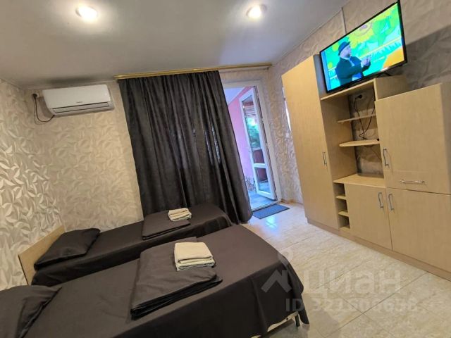 Сдаётся комната в частном 2-этажном доме на 1 этаже. В комнате 1 новая односпальная кровать с ортопедическим матрасом, большой шкаф, комод, телевизор, вентилятор. Вся мебель новая. Рядом на 1 эт. совмещенная ванна-душ-уборная. На 1 эт. в доме кухня, оборудованная всей необходимой техникой, мебелью и посудой. Уютный, тихий, зелёный двор. Рядом с домом детская площадка, остановки, аптеки, магазины, амбулатория, банкоматы, кафе и столовые. До города 10 мин. на транспорте, до пляжа 710 мин. пешком. Два песочных пляжа оборудованы всем необходимым. На пляже находятся кафе, рестораны, столовые, места покупок экскурсионных туров. Во дворе вся уличная мебель, места отдыха, еды и курения, зона барбекю, мангала.