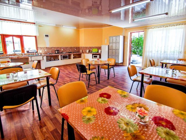 Есть полностью оборудованная кухня-столовая со всем необходимым инвентарем, для самостоятельного приготовления еды.