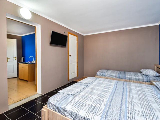 Предлагаем снять в Крыму комнату с кухней или комнату с двумя спальнями и гостинной с кухней в гостевом доме "La Fiesta Veseloe" с бассейном ! Незабываемый романтичный отдых в тишине и с необыкновенными видами на горы и озеро! В доме 4 отдельные входа , в каждой комнате террасы с плетеной мебелью и сушилкой для белья. В однокомнатном возможно размещение 2 взрослых и двух детей на раскладушках. В двухкомнатном с гостиной возможно размещение 6-7 человек Мы позаботились о Вашем комфортном проживании, поэтому все наши дома снабжены всем необходимым: двухспальные кровати с ортопедическим матрасом , натуральным постельным бельем из хлопка, огромные телевизоры со SMART TV , WI-FI, кондиционеры, холодильники, микроволновые печи, чайники. - Для Вашего удобства мы предоставляем полотенца (включая для бассейна) , а также есть утюг,гладильная доска , сейф. На всех террасах имеется сушилка для белья ,ванные комнаты оборудованы душевыми кабинами, фенами , удобными зеркалами с подсветкой. Обеденная зона, мини-кухня оснащена всем необходимым набором посуды. На территории гостевого дома для Вас есть бассейн, шезлонги, зонты. В отдельном помещении на территории гостевого дома имеется постирочная со стиральными машинами.В двухкомнатном номере стиральная машина находиться в санузле. Курить в доме и на террасе запрещено. . В общем дворе есть зона для курения.Так же для детей есть детская площадка ! Любителям готовки на огне - для Вас есть оборудованная мангальная зона До пляжа Вас разделяет 3 минутная езда на автомобиле. На берегу Веселовской бухты построена новая шикарная набережная с огромной детской площадкой и скейт парком. Весёлое подойдёт как любителям активного отдыха так и тем, кто предпочитает суете спокойное времяпрепровождение. Ну и, конечно, все развлечения и достопримечательности Судакского района Крыма доступны отдыхающим Весёлого: Генуэзская крепость и исторический музей, аквапарк, завод шампанских вин "Новый Свет", винодельческое предприятие "Солнечная Долина", парк аттракционов, рестораны, ночные клубы и кафе на набережной Судака, находящейся всего в 8 км от поселка. В поселке четыре продуктовых магазина,один супермаркет, два хозяйственный, аптека, рынок с местными фруктами и овощами.
