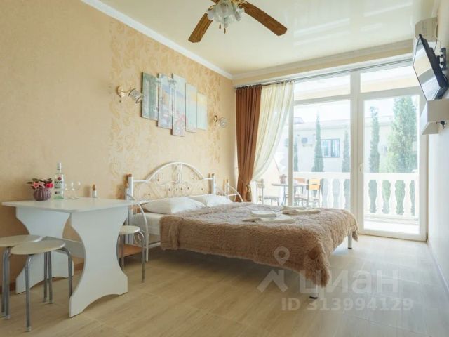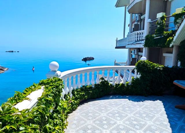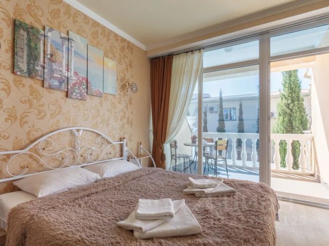 Описание территории: главным достоянием гостиницы можно считать небольшой (5 соток), но очень красиво оформленный зелёный дворик. Здесь растут пальмы, хвойные деревья, декоративные растения, хурма, гранат, виноград, плющ и море цветов. На территории небольшой водоём. В тёмное время суток световая иллюминация. Среди зелени летняя кухня, столики и лавочки, рядом барбекю. Здесь приятно проводить вечера под звёздным небом, жарить мясо, пить вкусное крымское вино, просто отдыхать в тишине.
