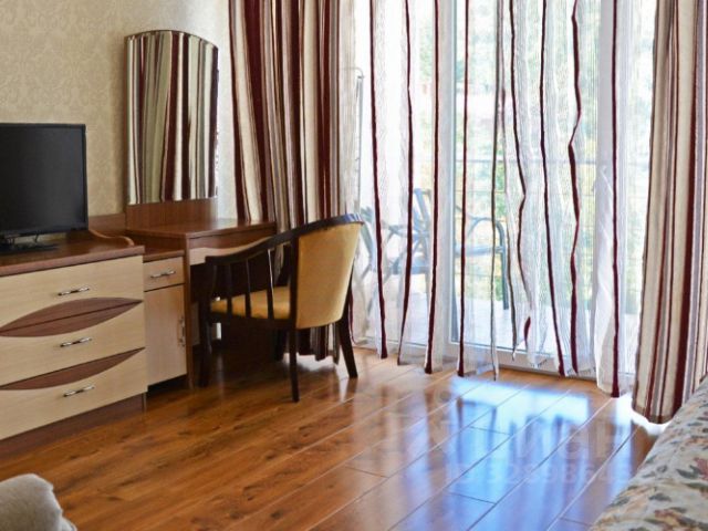 В номерах: удобные кровати, тумбочки, вешалка для одежды, шкафы, столики, санузлы, горячая вода, чайник, холодильник.
