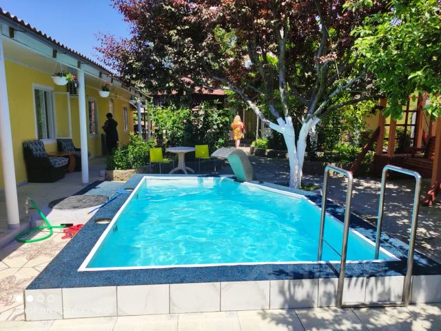 Семейный номер с кухней. Рассчитан на 4-5 человек. В номере: 1 двухместная кровать, 2-е одноместные кровати. Санузел с душевой кабиной. Рядом с номером на улице - беседка со столом и стульями. Мангальная зона. Во всех номерах есть кондиционеры, доступ к бесплатному wi-fi, парковка для машин. Гладильная доска, фен, стирка белья - по запросу.