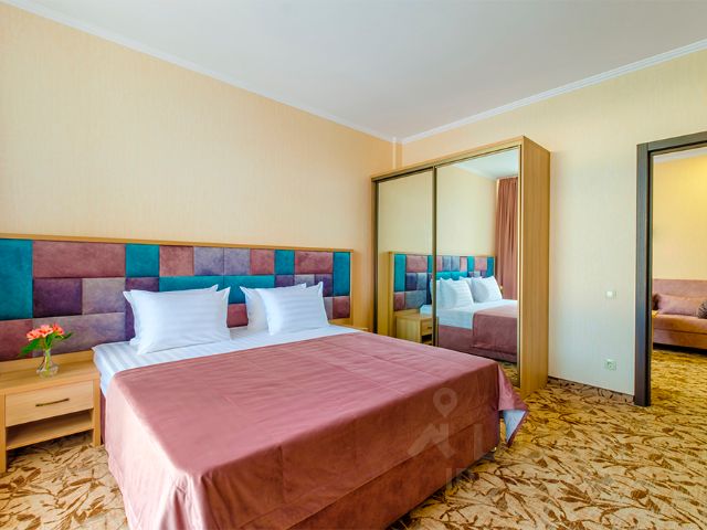 Отель "Династия" находится в одном из самых красивых мест восточного Крыма - поселке Орджоникидзе, рядом с городом Феодосия, всего в 120 км от Крымского моста. Отель "Династия" - два современных восьмиэтажных здания с продуманной инфраструктурой, лёгкими открытыми балконами и комфортабельными номерами. Каждый корпус оснащен двумя лифтами. Территория отеля закрыта для посторонних. На территории есть зона детской анимации. Охраняется круглосуточно. Все номера кондиционированы, оснащены современной мебелью, спутниковым телевидением, интернетом, телефоном и сейфом. Уборка производится ежедневно, смена белья каждые три дня. Отель идеально подходит как для активных путешественников, так и для гостей, ищущих уединения, умиротворения и вдохновения. В отеле есть удобные варианты размещения для большой семьи в номерах "коннект", для больших корпоративных групп и для семейного отдыха с маленькими детьми. Для детей младшего возраста предусмотрены маленькие детские кровати (по запросу). WiFi: бесплатный, в номерах и общественных зонах. Внутри отеля на первом этаже гостей встречает уютный холл с зоной отдыха, лобби-бар и круглосуточная стойка приема и размещения. Также на первом этаже расположены камера хранения и три тематические секции детской комнаты интерактивная с двумя приставками Sony PlayStation (4+), творческая и мягкая для малышей. В цокольном этаже отеля гостей ждет сауна с залом для отдыха и спортивный зал с душевыми комнатами. Пляж муниципальный, песочный, в 50 метрах от отеля широкая пляжная полоса, пологий берег. На пляже работают спасатели, есть аренда снаряжения и катеров, сувенирные лавки. Видовой двухкомнатный номер, оборудованный всем необходимым для комфортного проживания. В номере: двухспальная кровать, зеркало, шкаф-купе, прикроватные тумбочки, консоль, два кресла, настенная вешалка, тумба для багажа, журнальный столик. В номерах установлены: встроенный мини-сейф, два телевизора, холодильник, кондиционеры в каждой комнате. Санузлы (2шт.): косметика, раковина, душевая кабина, электрический полотенцесушитель, фен, унитаз. Освещение встроенные потолочные светильники. Покрытие пола: ковролин, санузел-плитка. Из каждой комнаты есть свой выход на балкон: из одной комнаты боковой вид на море, из второй прямой вид на море.