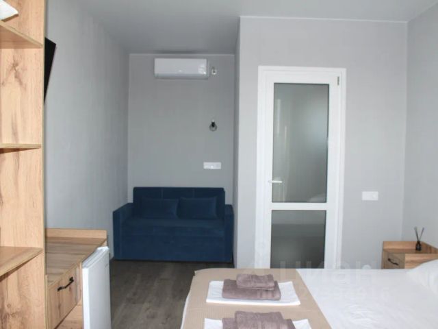 Уютный улучшенный номер "Студия", размещение до 4-х гостей. Приоритетом которых является совместный комфортный отдых. Номер разделен на 2 отдельные части для уютного проживания семьи, с возможностью уединиться, находясь в одном помещении, имеет прихожую + сан. узел. Номер "студия" оснащен всей необходимой быт. техникой, современной мебелью, wi-fi. Терраса с садовой мебелью для приятного времяпрепровождения на воздухе. В данной категории номеров предусмотрена установка дополнительного места (+1). Море в 5 минутах ходьбы. Гостевая кухня с дополнительным холодильником, всеми кухонными принадлежностями. Парковка, мангальная зона, игровая площадка. Стиральная машина.