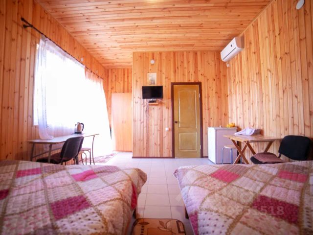 Непосредственно о доме: Новый коттедж 260 кв.м. на 8 номеров, каждый с отдельным входом на участке в 6 соток. Максимальное размещение в номере - 4чел. Номер — 37м.кв.: комната (21 кв.м.), веранда (13 кв.м.), санузел. В номере: новая мебель: кровать 2-х спальная с высоким ортопедическим матрасом, прикроватные тумбочки со светильниками, диван 2-спальный (раскладывается в длину), стол, стул, шкаф-купе, москитная сетка, теневые шторы. А также новое постельное белье, комплект из 2-х махровых полотенец на человека, одеяла и др.; кондиционер; холодильник с морозильником телевизор с большим плоским экраном отделка пола - ламинат (спальная зона) / плитка (входная зона); На веранде: обеденная зона: большой кованный обеденный стол, стулья; отделка пола - плитка. кухонная зона. Санузел: душевая кабина, туалет, умывальник, зеркало, бойлер, эл. розетки для фена и бритвы, отделка пола - плитка. На территории возле коттеджа - мангал. До моря 200 метров, песчаный пляж, море с пологим песчаным дном (идеально для детей). До соленого озера с лечебной грязью 100 метров. До магазинов, рынка, кафе, остановки автобусов и такси 100 метров. На территории поселка (3 га): детская площадка, стоянка для автомобилей, своя скважина и эл. подстанция, ведется круглосуточная охрана с видеонаблюдением. Столовая.