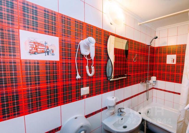 Ванная комната: ванна, раковина, туалет, набор полотенец, туалетные принадлежности, фен.