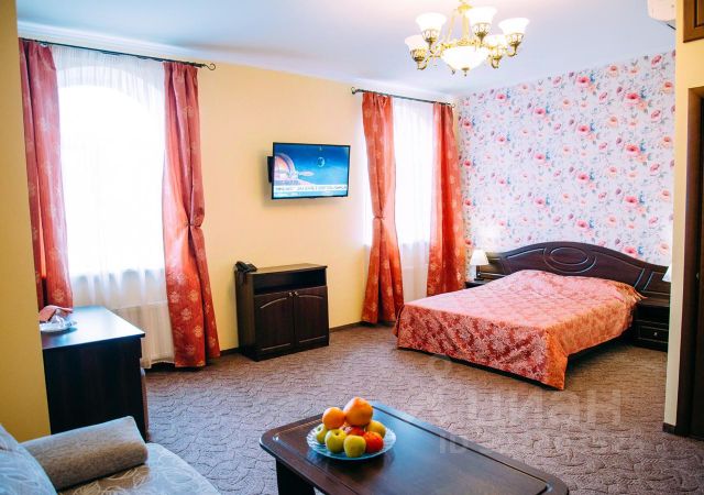 В номере двуспальная кровать (матрац комфорт), прикроватные тумбочки, шкаф, прихожая, комод, полки для посуды, стол, журнальный столик, стулья, холодильник с мини-баром*, телефон, высокоскоростной интернет, цифровой телевизор, ковровое покрытие, кондиционер, хорошая шумоизоляция.