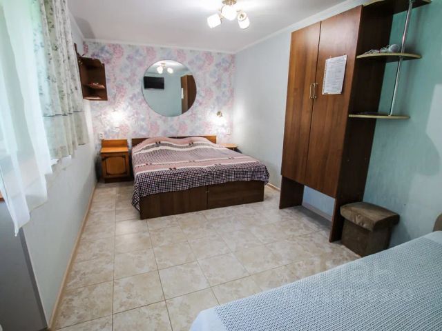 Пятиместный, двухкомнатный, просторный номер класса стандарт. В номере есть вся необходимая мебель, кухонные и столовые принадлежности. Двуспальная кровать и односпальный диван в одной комнате. Две односпальные кровати в другой комнате. Совмещенный санузел с душем в номере. Общая кухня и мангальная зона. Двухэтажная столовая откуда открывается невероятный вид на закат над морем. С террасы вид на море 24 часа. Вода из собственной скважины. Стабильная подача горячей воды. Wi-fi на всей территории. Невероятно красивый ухоженный сад и оборудованная детская площадка. Шаговая доступность до оборудованного пляжа. Гостевой дом находится в спальном районе курортного поселка Николаевка. Снять комнату посуточно в Симферопольском районе республики Крым.