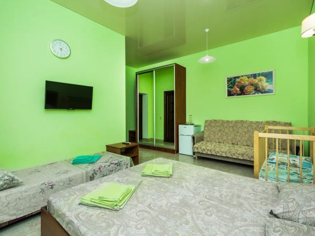 Номера со всеми удобствами, частично с кондиционерами и застекленными лоджиями. В номере имеется телевизор, холодильник, телефон.