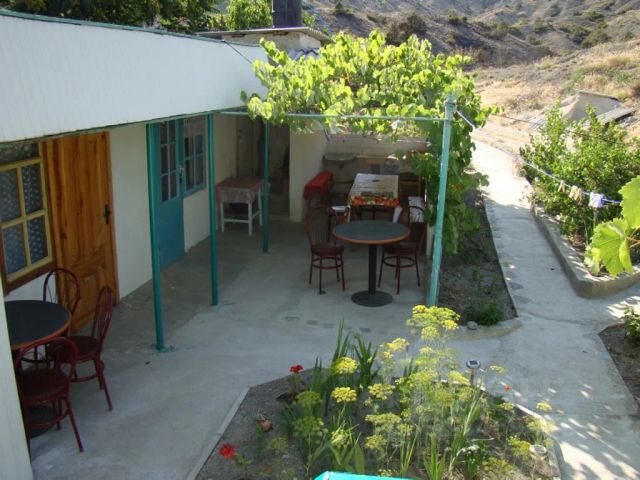 Предлагаем комнаты в частном двухэтажном доме, всего 6 комнат, размещение от 1 до 4 человек. В каждую комнату отдельный вход под ключ. Холодильники в 3 и 4-местных комнатах 1 этажа, для 2 этажа - холодильник на общей кухне. Удобства для проживания минимально необходимые, общие: беседки со столиками, умывальники, душ (вода круглосуточно, греется от солнца), туалет дачного типа. Возможно изменение времени заезда/выезда. Стол, стулья, кровати, тумбочки, зеркало, холодильник. 2 ближайших пляжа 15 минут пешком; кипарисовая аллея, банкомат, аптека - 15 минут пешком; продуктовый магазин, автобусная остановка - 5 минут пешком; генуэзская крепость - 20 минут пешком. Наше преимущество это выгодное местоположение за небольшие деньги. Кроме того, что юго-западный район г. Судака находится в пешеходной доступности к морю и объектам инфраструктуры, внутри района мы также расположены очень комфортно крайний дом, из двора и окон открываются красивые виды на горы в сторону нового света, а не в соседские дворы и на бетонные стены. Зелёный тенистый двор. У нас простор и чистый воздух.