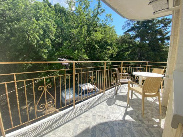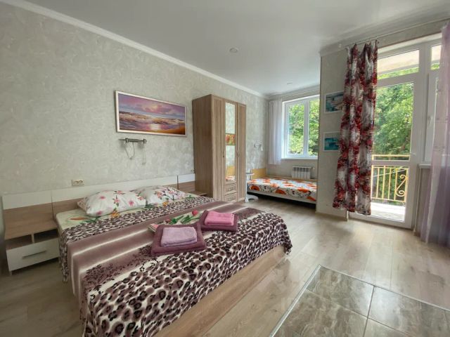 Просторный однокомнатный номер - студия имеет небольшую комнату-кухню, он соответствует всем стандартам европейского гостиничного бизнеса. Модный дизайн номера, удобная стильная мебель. В номере с комфортом могут расположиться трое взрослых отдыхающих или двое взрослых и двое детей. В номере имеется два раскладных дивана, 2-х спальная кровать, кресло-кровать, комната разделена мебельной стенкой. Также тут установлен кондиционер, есть телевизор (спутниковое тв), стол, стулья, кресла, платяной шкаф, тумбочки, зеркала, фен; на кухне: холодильник, электрочайник, газовая печка. В номере отдельный санузел с душевой кабинкой, постоянно есть горячая вода. Количество комнат (1), кондиционер, кухня в номере, эл. чайник, посуда. На вилле "Лилия" предлагается 12 комфортабельных одно, двух и трёхкомнатных номеров с возможностью комфортного размещения в номере от 2 до 6 человек. На вилле имеется оборудованная кухня для самостоятельного приготовления пищи. Также есть возможность заказывать питание ( завтрак) Вилла "Лилия" - белоснежный трёхэтажный особняк, который находится в приморской зоне массандры, в тенистом старинном парке, вблизи знаменитого винзавода. Территория виллы "Лилия" огорожена и охраняется. На зелёной красивой территории виллы есть открытый бассейн, охраняемая стоянка на 8 автомашин, площадка для отдыха с гротом. До моря можно добраться на машине и пешком через Массандровский парк, здесь возможно пользование чистым огороженным галечным пляжем гостиницы "Ялта интурист" бесплатно.