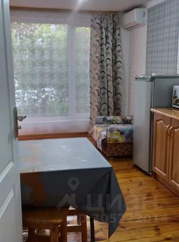 В комнате 2 двуспальные кровати, кожаная мягкая мебель с раскладным диваном, кондиционер, два шкафа/гардероба с зеркалами, трюмо с зеркалом, пуфик, большой холодильник, телевизор, выход на лоджию с видом на море, горы и Генуэзскую крепость.