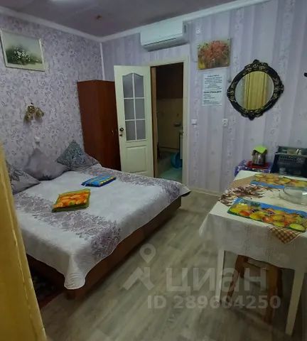 Небольшой номер, включает все необходимое для проживания, оснащен кондиционером, шкаф для одежды, кухонная зона, с необходимой посудой, санузел. Кровать, шкаф, кухонная мебель. Несколько продуктовых магазинов, столовые, банк в 10 минутах ходьбы в начале улицы Гагарина.