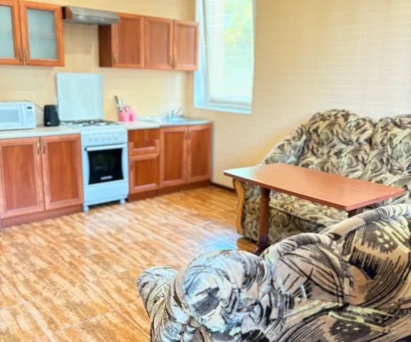 В шаговой доступности море, кафе, рестораны, столовая, магазин, остановка маршрутки, остановка трамвая, парк развлечений, парк отдыха. В этом доме общая кухня, со всеми кухонным принадлежностями и бытовыми приборами. Обеденный стол и стулья.
