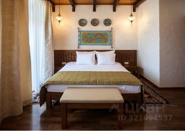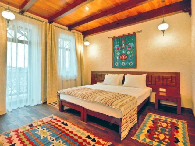 Отель Джеваль расположен в г. Евпатория.Расположившись в сердце Старого города на исторической площади Одун-базар, в 5 минутах от моря, отель стал яркой гранью культурно-этнографического центра, включающего также музей крепостных ворот , кофейню и этно-ресторан.Расстояние до аэропорта составляет- 57 км., а до железнодорожного вокзала-2.2 км. В распоряжении гостей 19 номеров категории Стандарт, тематические люкс "Нар","Зейтун" и апартаменты "Бадем".Номера располагают кондиционером, мини-баром и чайно-кофейной станцией. В собственной душевой комнате предоставляются фен и халат. Из окон люксовых номеров открывается вид на море. В числе прочих удобств - сейф. В отделке номеров отеля использованы только натуральные материалы (черепица-татарка, мебель из крымской акации и черешни). К услугам гостей парковка, ресторан, возможность организовать трансфер. Гостям предоставляется доступ к сети Wi-Fi.По утрам подают завтраки двух видов:крымскотатарский и европейский,которые ежедневно меняются. Работает круглосуточная стойка регистрации. Вежливый персонал отеля любезно посоветует маршрут для Вашего путешествия. В летний период гостям предоставляется бесплатный трансфер на пляж "Лазурный берег".В осенне -зимний период при предварительном бронировании (за 2 недели)возможно посещение бани с купелью на берегу моря. Номер с прекрасным панорамным видом. Выполнен в традиционном восточном стиле и оснащен всем необходимым. В номере великолепная мебель с резьбой ручной работы, тканые ковры и салфетки, изящные бра, подушки с традиционной вышивкой. Для удобства гостей: 2-х спальная кровать, раскладной диван Возможность установки детской кроватки LCD- телевизор Посуда Сейф Электрочайник Кондиционер Мини-бар Wi-Fi