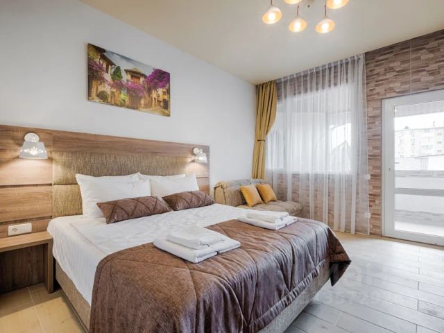 Вблизи нас, в пешей доступности в 5 минутах находится прибрежная полоса с песчаными и галечными пляжами. Здесь вы можете спрятаться от солнца под навесом, воспользоваться такими услугами, как бар, теннис, бильярд, прокат транспорта, батуты, детские игровые площадки на свежем воздухе. Также есть всевозможные водные, оздоровительные процедуры, массаж